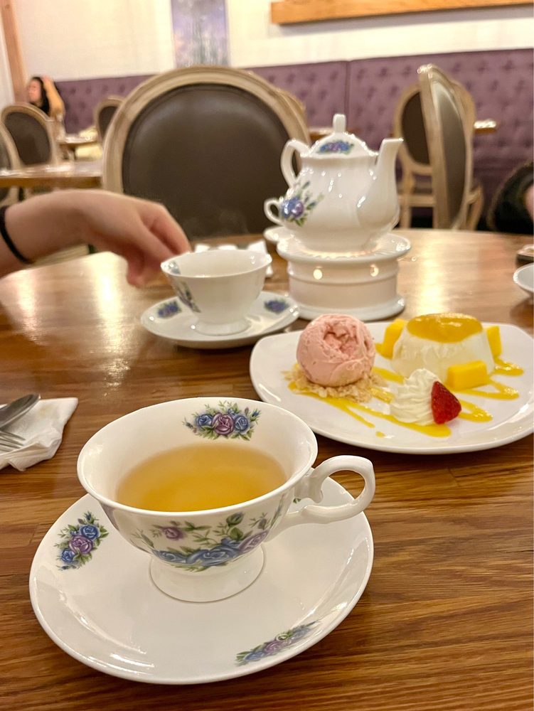 Prince Tea House in New York City's Chinatown is a tea room that offers a relaxing atmosphere, perfect for enjoying a variety of teas and desserts. The menu includes unique options like mango crepe cake, hot rose milk tea, Fleur de Geisha green tea, and a selection of crème brûlées. Their afternoon tea sets for two are also popular and filling, with options to add boba and lychee wine. While the jasmine milk tea may have been a miss for some, the chicken katsu sandwich received high praise. The crepe cakes stand out for their unique flavors like green tea matcha and purple yam, although some found the Earl Grey milk tea too sweet. The ambiance is beautiful, with tufted booth seats and floral porcelain tea pots, making it a great spot for hosting events as well. Overall, Prince Tea House offers a delightful experience for tea lovers and dessert enthusiasts alike.